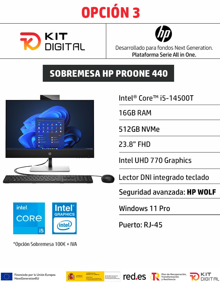 | Sobremesa | HP ProOne 440 G9 | Intel Core i5 | 16 GB | 512 GB | 23,8" | 100 € | 3 |