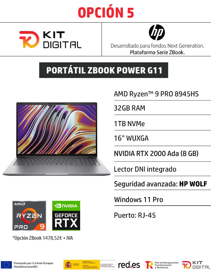 | Portátil | HP ZBOOK POWER G11 | AMD Ryzen 7 Pro | 32 GB | 1 TB | 16" | 650 € | 4 |