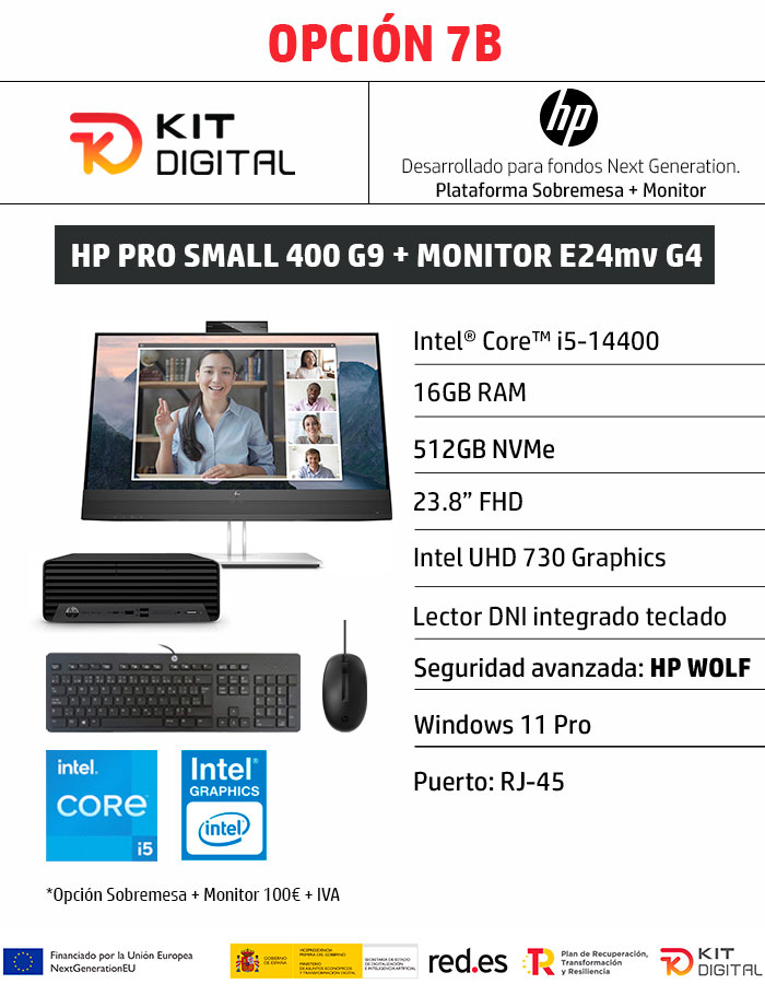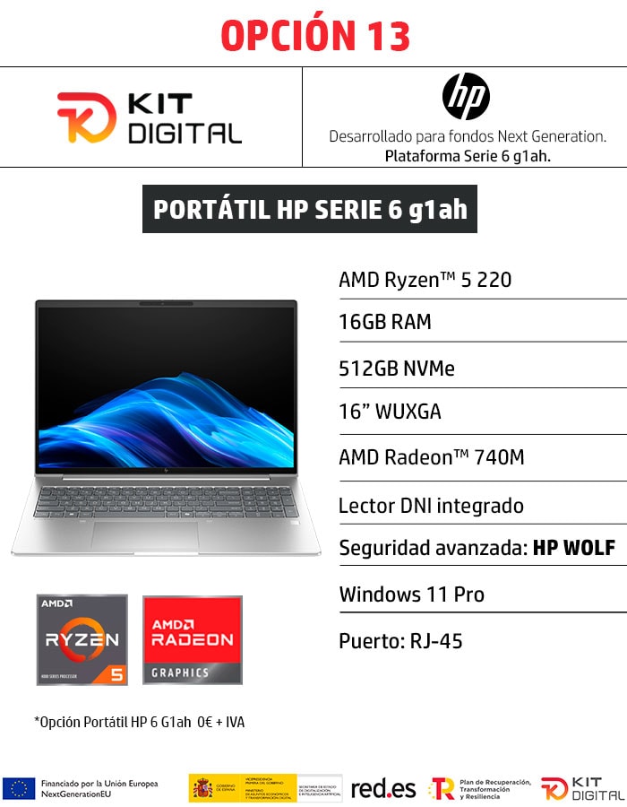 Sí, también ofrecemos dos modelos de portátil HP de alta gama, con coste adicional. En este caso los 1.000 € del Kit Digital se aplican como descuento al precio de estos ordenadores.