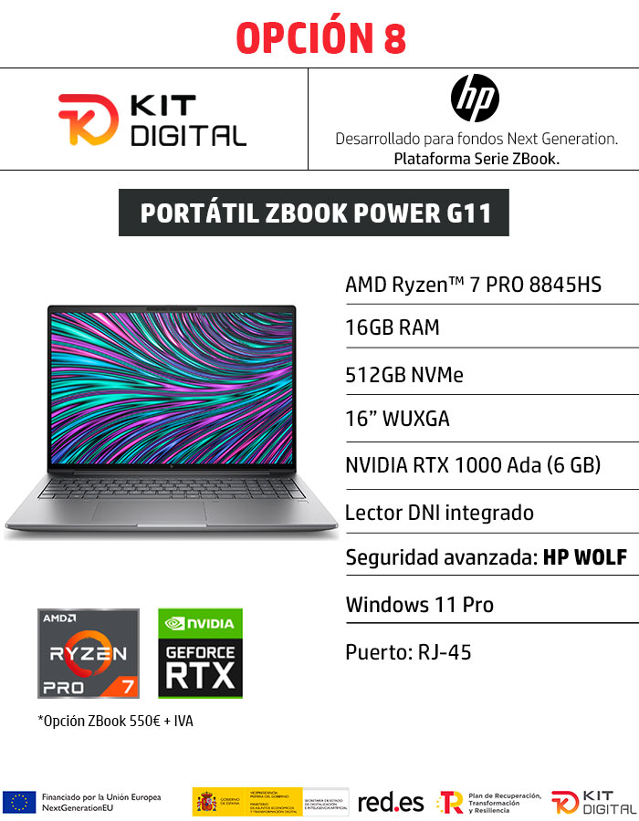 | Portátil | HP ZBOOK POWER G11 | AMD Ryzen 7 Pro | 16 GB | 512 GB | 16" | 550 € | 8 |