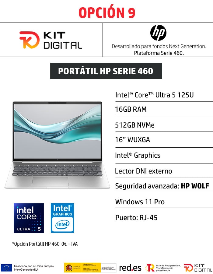 | Portátil | HP serie 460 | Intel Core Ultra 5 | 16 GB | 512 GB | 16" | GRATIS | 9 |